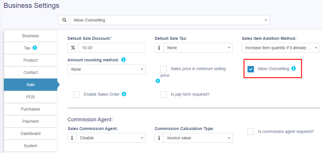 In some cases, the products need to be sold even when they are out of stock. In such cases, you can enable the “Allow Overselling” Option from the Business Settings > Sale.