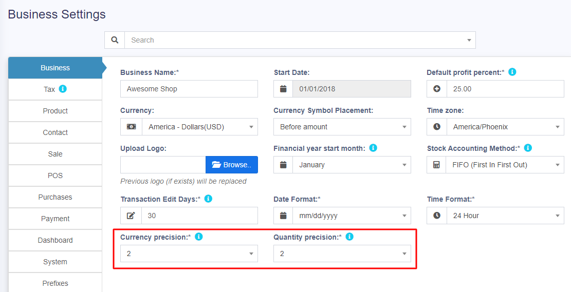 • 3. Change quantity_precision value to change the precision for quantity. The maximum is 4.