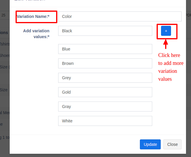 Example of variation is, for example, Jeans can have multiple colors, so add variations called Colors and provide the value for it. As given in the image below.