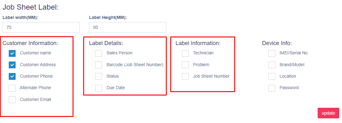 Update and save the changes. Whenever a new job sheet is created the customer details will be displayed.