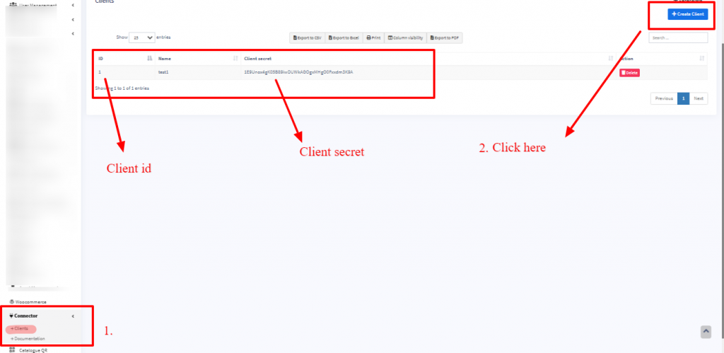 NOTE: Only the superadmin users can view the Connector -> Clients page. So if any other users need a client id or secret then the superadmin user should generate and send it to them.