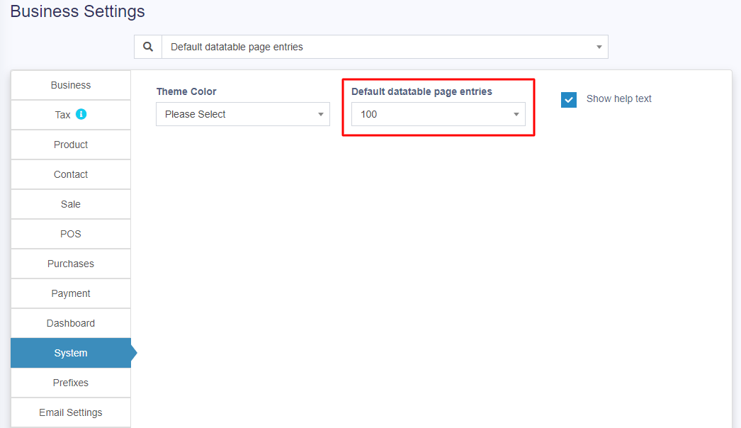 The default number of entries in the data tables can be selected in Business Settings -> System.