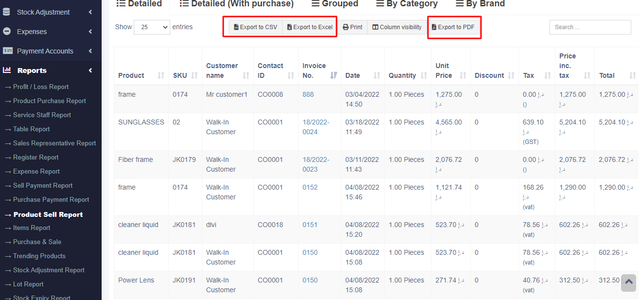 KOKABOOKSPOS POS allows you to export your data into either Excel, CSV, or pdf files. You can export your sale, purchase, products, categories, all your reports, etc.