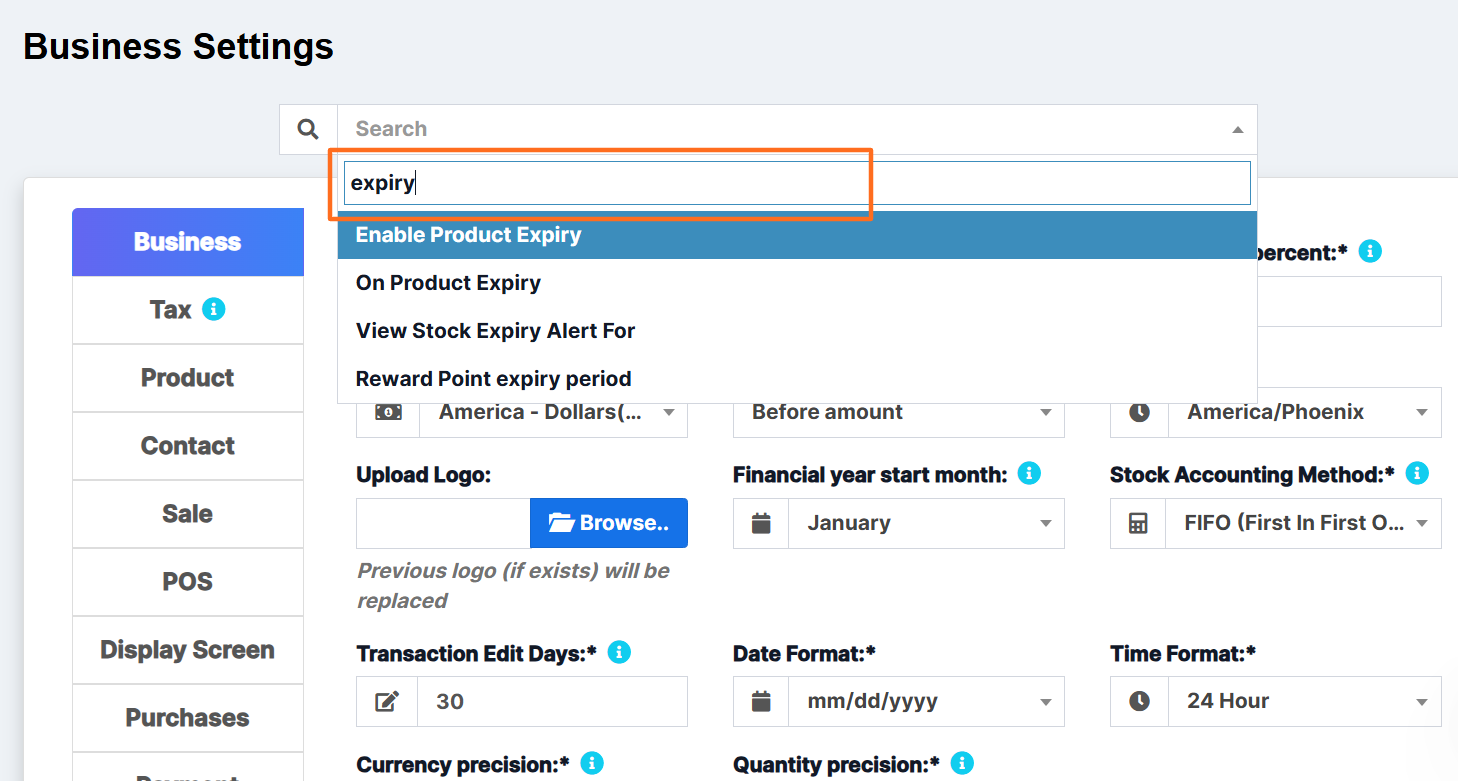 Settings is overwhelming. There are a lot of options in here. So in UltimatePOS we implemented as easy way to search for any option. Follow the screenshot below.
