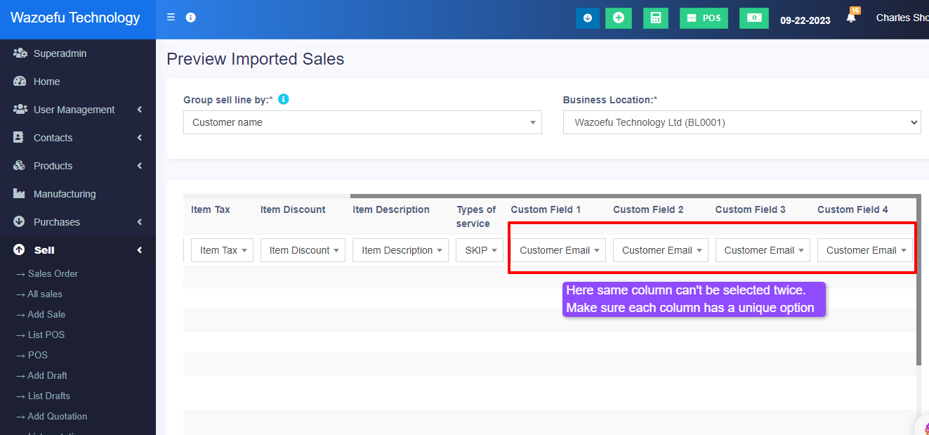 This issue happens when the same option name is chosen for multiple columns in the import table