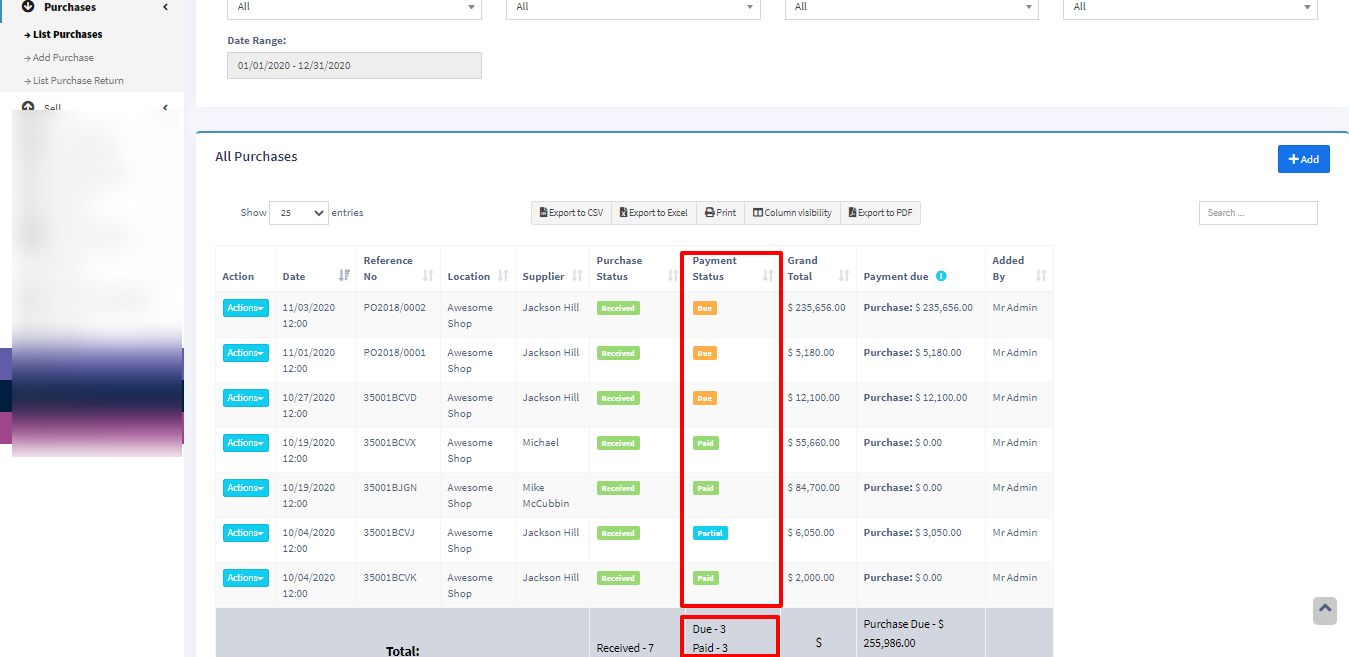 • 4. Overdue: PO is 100% not paid & past the due date.