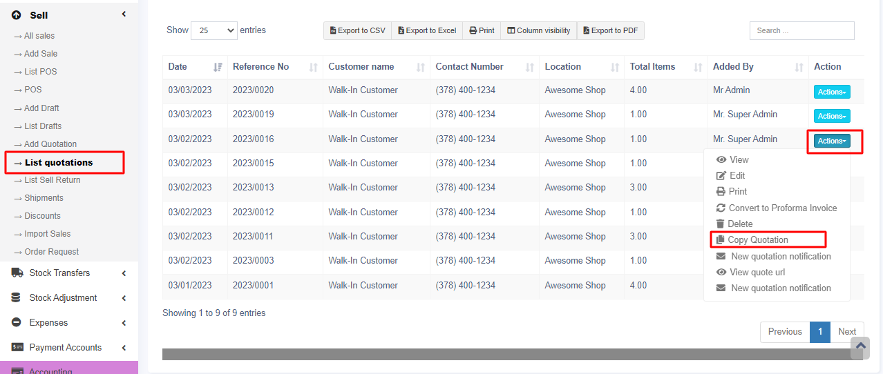 You can view all Quotations & Drafts from List Quotation or List Draft respectively. Existing draft/Quotation can be edited to make it as final sales.