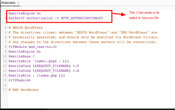 • 2. Add this 2 lines in the very top of the htaccess file, similar to the below screenshot:RewriteEngine on